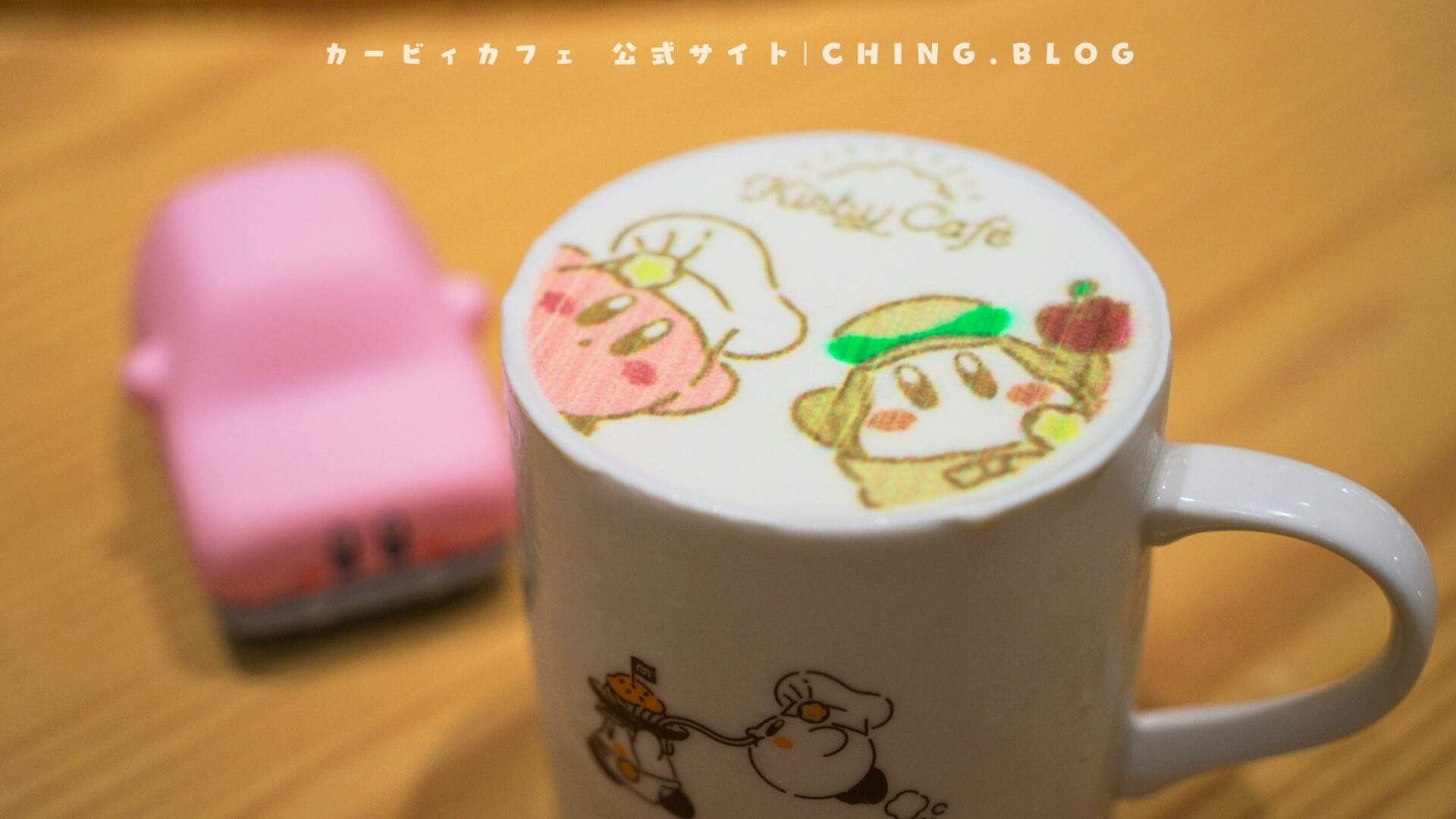 I ordered a matcha au lait that comes with a take-home cup featuring illustrations from the Kirby Café theme, which is absolutely adorable!