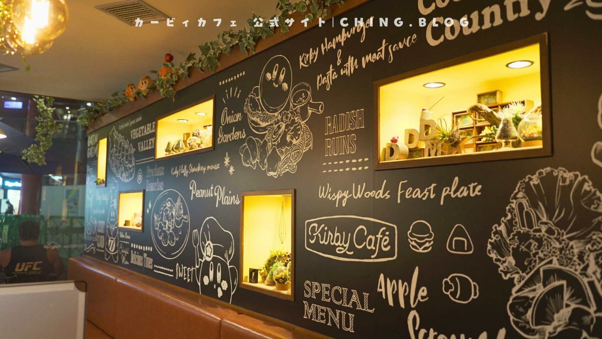 Whether it’s the giant anthropomorphic apple tree, Kirby dolls, Kirby totems on the walls, or doodles on the blackboard, every spot will delight fans and keep cameras clicking.